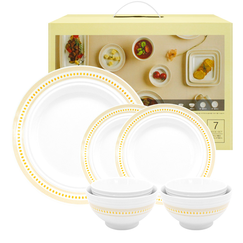 크기 공기 x2, 대접 x2, 6인치 접시 x2, 9인치 접시 x1