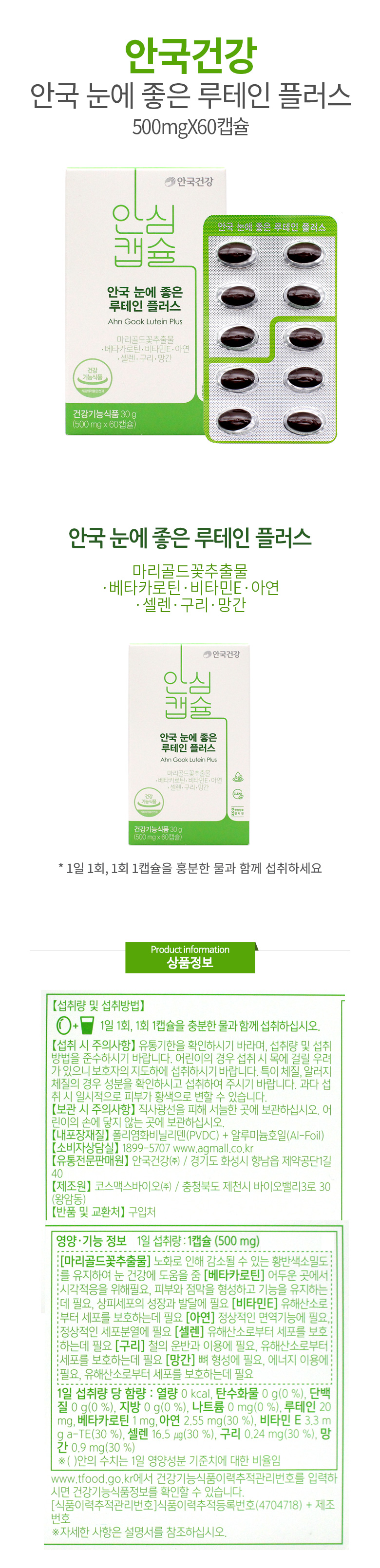 안국건강 안국 눈에 좋은 루테인 플러스 60캡슐X4개