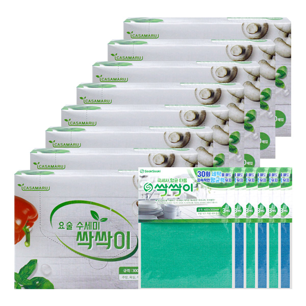 까사마루 요술 수세미 싹싹이 30매X8박스+극세사 항균타올 3매입X8/일회용수세미 주방수세미 설거지수세미