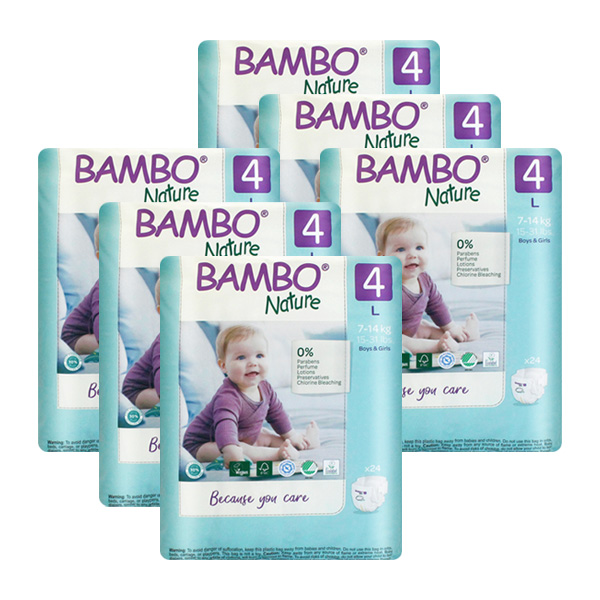 밤보네이처 밤보그린 기저귀 밴드형 4단계 대형 공용 24매X6개