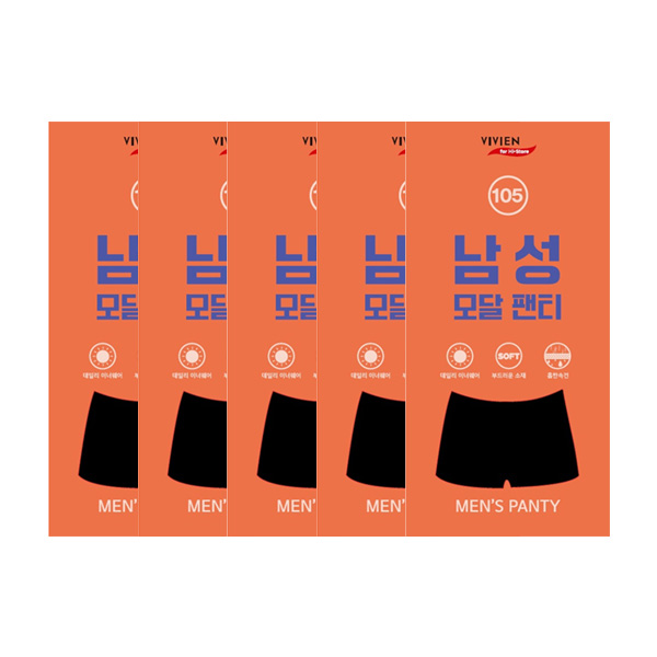 비비안 남성 모달 팬티 PT3452D (검정색 / 사이즈 105) x 5개