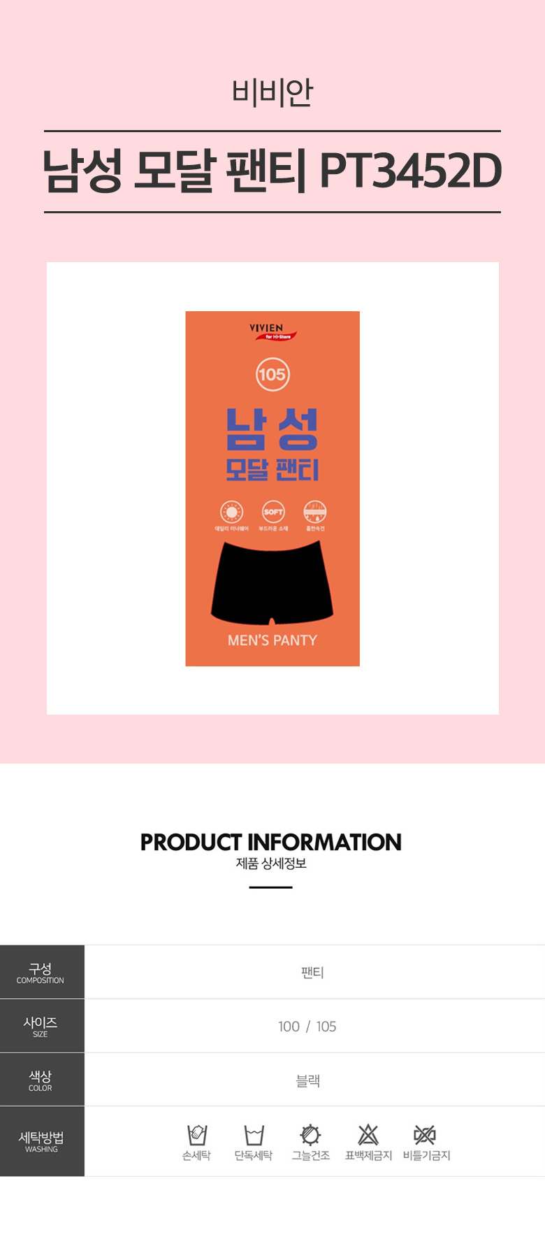 비비안 남성 모달 팬티 PT3452D (검정색 / 사이즈 105) x 30개