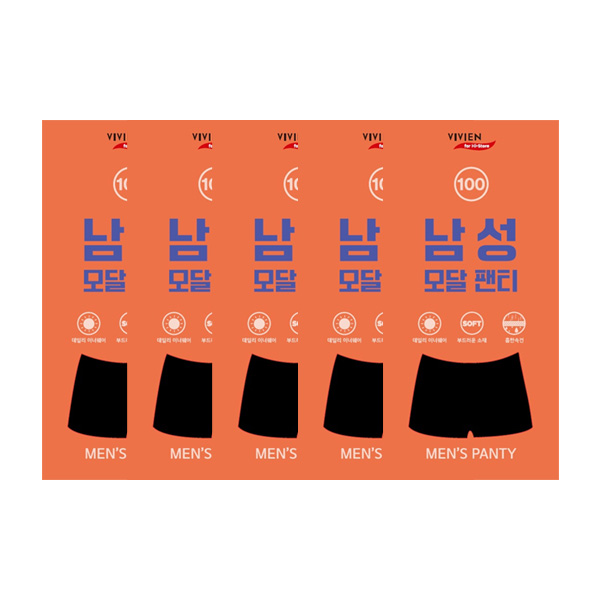 비비안 남성 모달 팬티 PT3452D (검정색 / 사이즈 100) x 5개