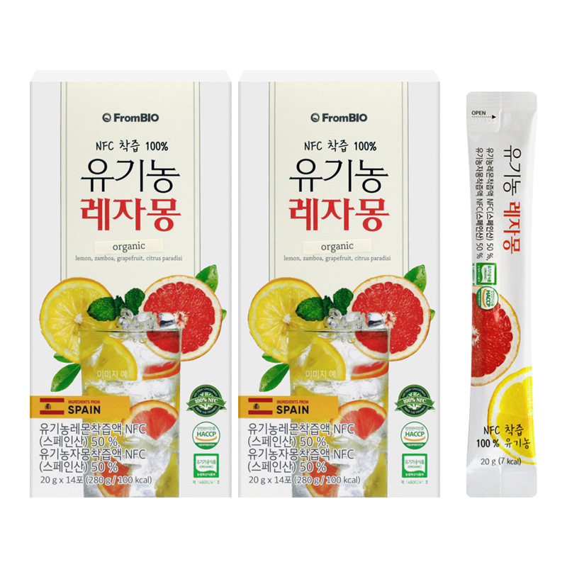 프롬바이오 유기농 레자몽 14포X2박스 / 레몬즙 자몽즙 NFC 착즙 100%