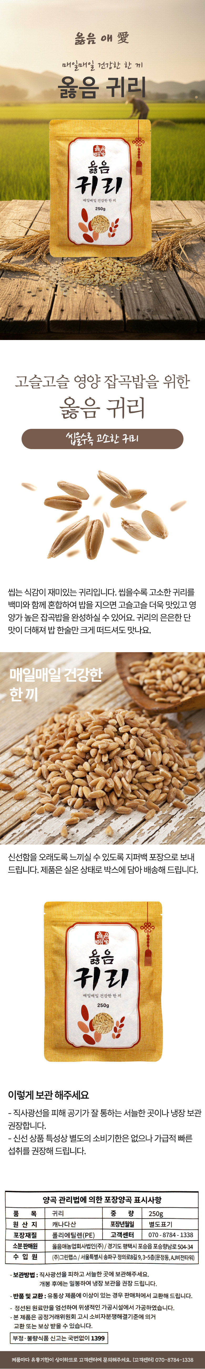 백년농가 옳음 귀리 250gX8개
