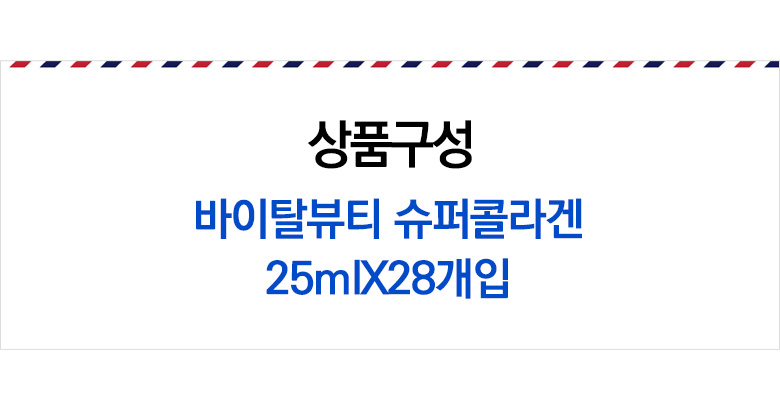 | 섭취 시 주의사항 및 부작용 발생 가능성 | 섭취량 : 성인 1일 1회, 1회 1앰플(25ml) / 섭취방법 : 흔들어 섭취하세요. 매일 저녁 시간 섭취하시면 좋습니다. / 섭취시 주의사항 : 용기 개봉 시 손이 다치지 않도록 뚜껑 부위를 조심스럽게 잡고 여시기 바랍니다. 캡 고리 부분을 삼키지 않도록 주의하시기 바랍니다. 제품에 열을 가하거나 얼리지 않도록 주의해 주시기 바랍니다. 식품 원료의 특징상 거품이나 침전물이 생길 수 있으며, 보관 방법에 따라 내용물의 색상 편차가 있을 수 있으나 콜라겐 원료의 특성상 발생할 수 있는 현상으로 안심하고 충분히 흔들어 섭취하셔도 좋습니다. 용기가 변형되거나 훼손되어 내용물의 맛, 향이 변한 경우에는 섭취하지 않도록 해 주시기 바랍니다. |