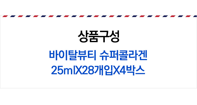 | 섭취 시 주의사항 및 부작용 발생 가능성 | 섭취량 : 성인 1일 1회, 1회 1앰플(25ml) / 섭취방법 : 흔들어 섭취하세요. 매일 저녁 시간 섭취하시면 좋습니다. / 섭취시 주의사항 : 용기 개봉 시 손이 다치지 않도록 뚜껑 부위를 조심스럽게 잡고 여시기 바랍니다. 캡 고리 부분을 삼키지 않도록 주의하시기 바랍니다. 제품에 열을 가하거나 얼리지 않도록 주의해 주시기 바랍니다. 식품 원료의 특징상 거품이나 침전물이 생길 수 있으며, 보관 방법에 따라 내용물의 색상 편차가 있을 수 있으나 콜라겐 원료의 특성상 발생할 수 있는 현상으로 안심하고 충분히 흔들어 섭취하셔도 좋습니다. 용기가 변형되거나 훼손되어 내용물의 맛, 향이 변한 경우에는 섭취하지 않도록 해 주시기 바랍니다. |