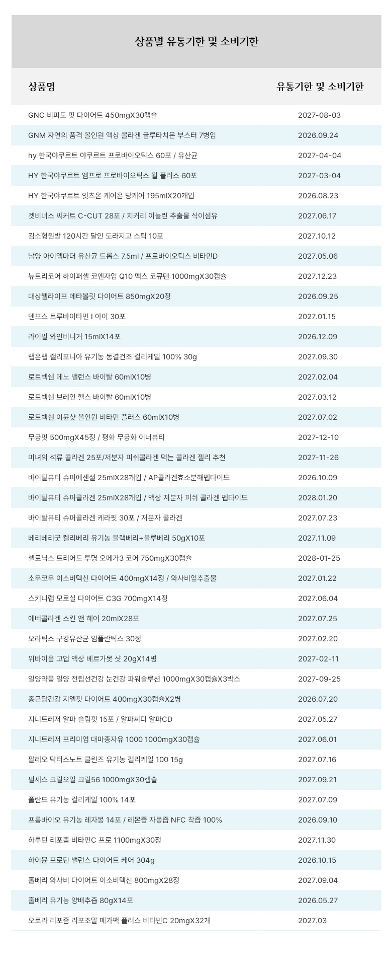 | 소비기한 및 보관방법 | 상세설명참조 |